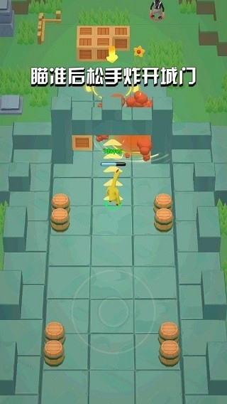 3、操作方法十分简便,进入游戏后,用手指滑动屏幕来操控角色移动,与此同时鸡会举起手中的鸡蛋(炸弹),角色下方会显示移动方向,松开手指时鸡就会把手中的鸡蛋投掷出去。