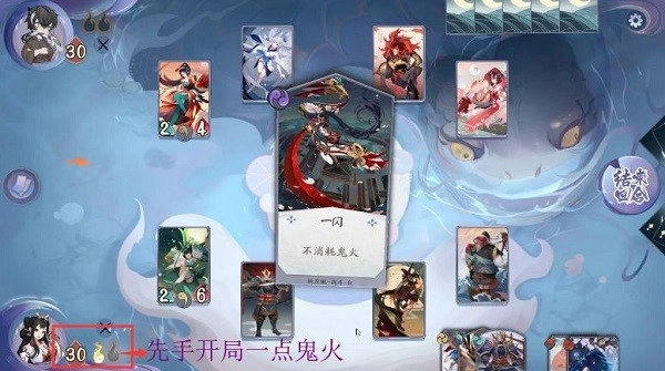 如果客人在对局中是先手出牌,那么在第一回合只有一点”鬼火“可以使用。如果是后手出牌,那么在第一回合”鬼火“数量是正常的两点。