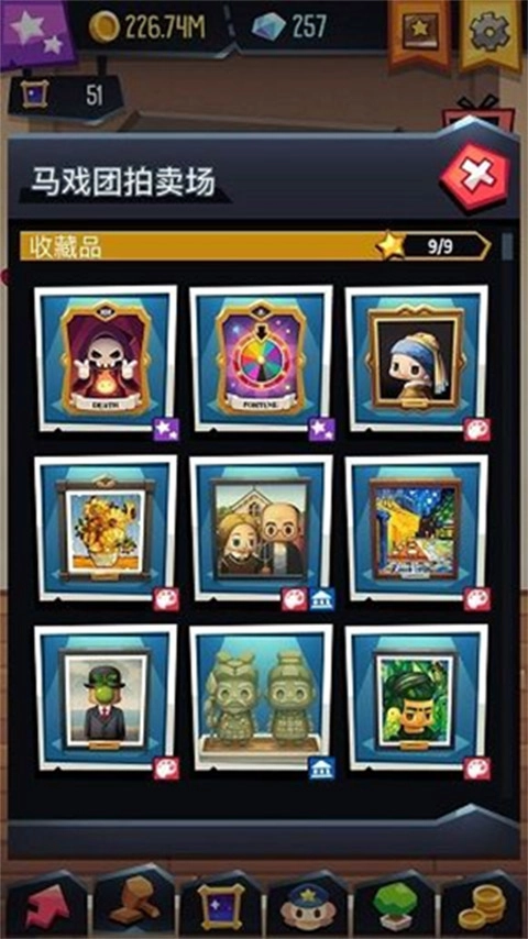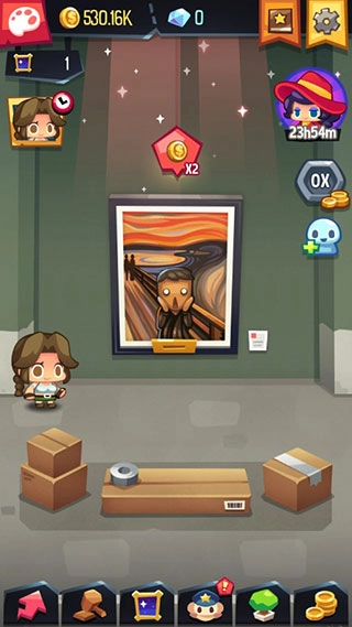 通过完成任务来升级和拓展你的艺术画廊;用赚取的金币与宝石招募新员工,布置展品并参与艺术品竞拍!