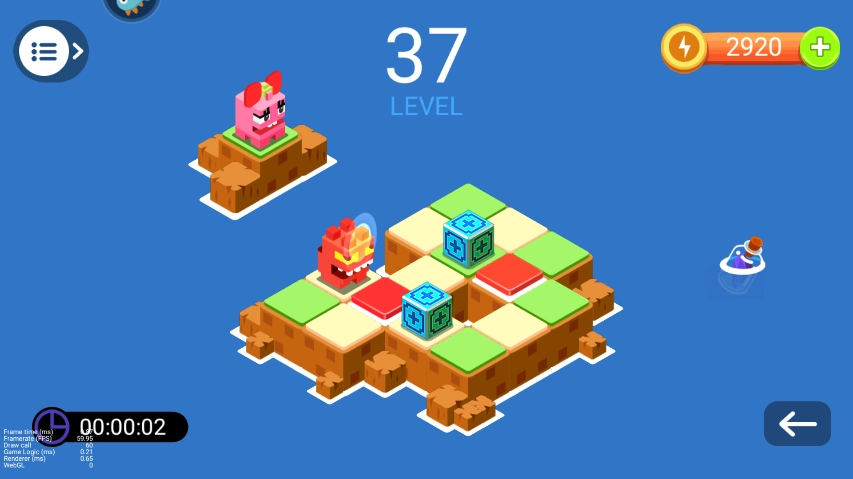 进入关卡后,玩家得把箱子推到指定的地方,这样才能救出小伙伴、取得胜利。