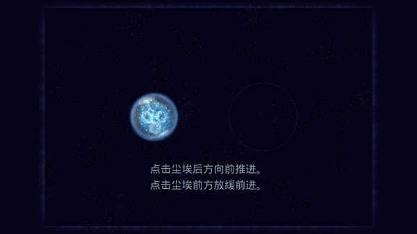 2、我们选取最常玩的“奥德赛模式”作为例子,之后我们会扮演一粒尘埃,移动规则是点击尘埃后方使其向前推进,点击尘埃前方则会放缓前进速度。