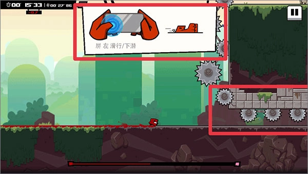 5、在低障碍物中则可以按住屏幕左侧来进行滑行/下潜动作