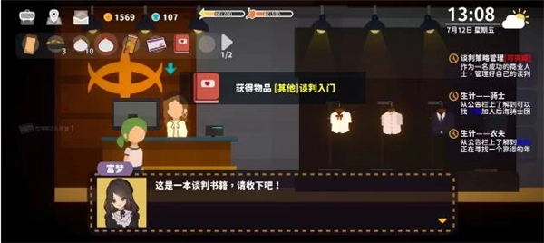 2、需要注意的是,书屋里的《谈判入门》(售价110r),在第二天选择销售工作后,会在后续任务中获得,所以选择该工作的人不需要额外购买这本书。