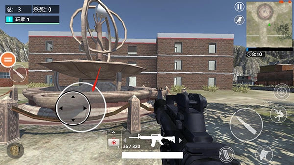 1、进入游戏,左侧这个虚拟键可以控制角色的移动方向;