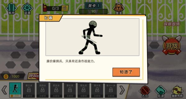 选择武器士兵,前期只有匕首哦;
