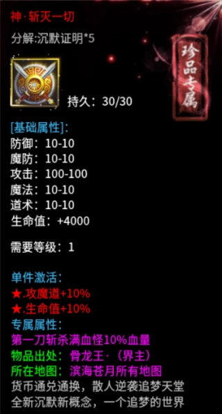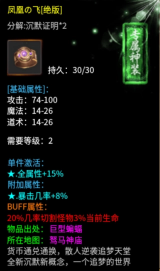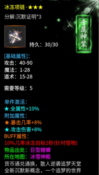 5.散人必追专属:冰冻项链,切割手镯,切割武器,减伤盾牌,攻速宝物