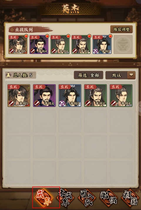 1、游戏内包含种类繁多的英杰,这些英杰分为成年与未成年两类,未成年英杰需达到15岁方可上阵参战,并且每位英杰都有其专属的祖籍信息以及配偶信息,玩家只需点击就能进行查看。
