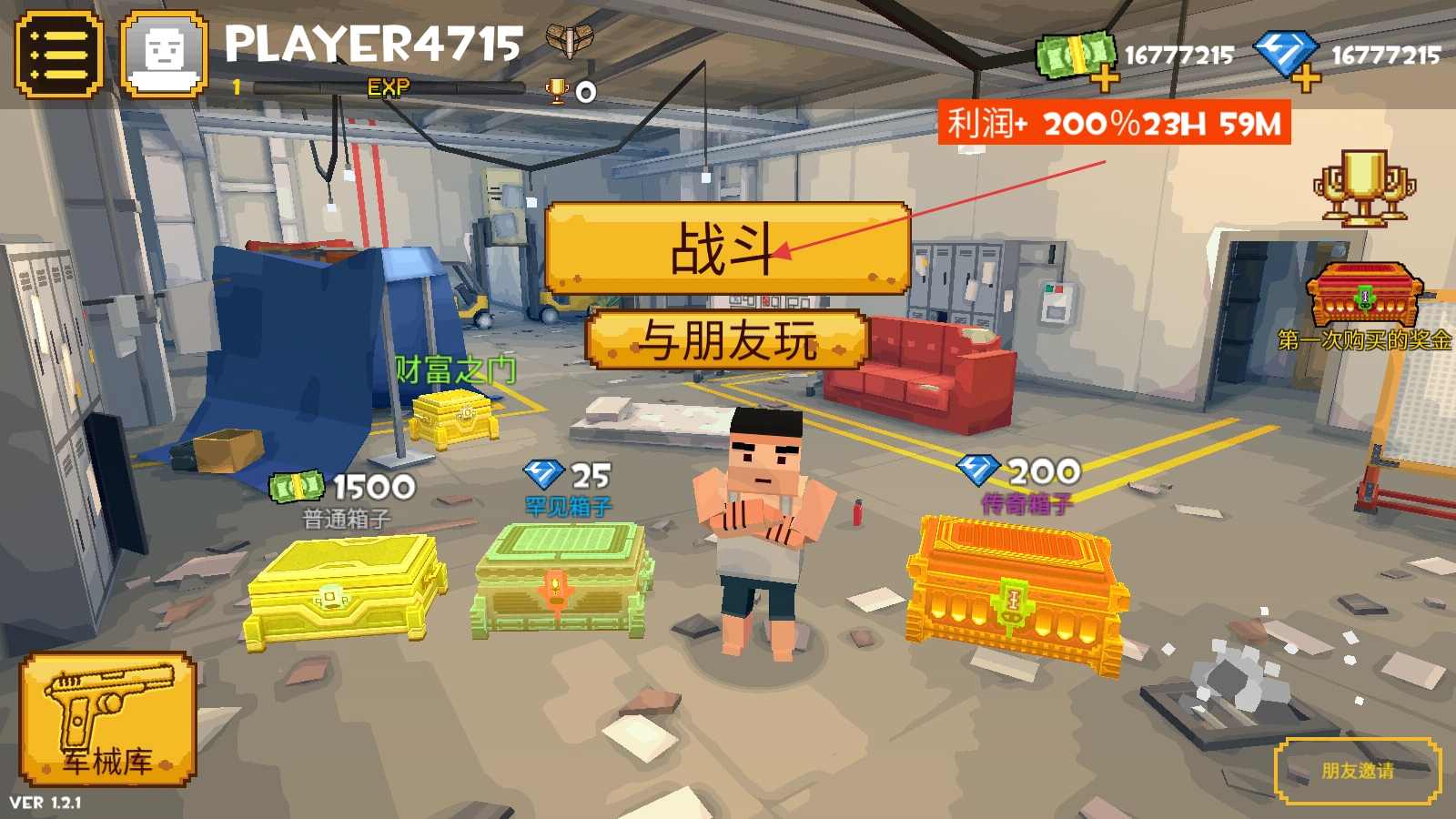 1、打开游戏像素躲猫猫,点击【战斗】或【与朋友玩】开启游戏。