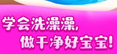 3、转动出水旋钮,先把水温调好,暖融融的浴室让人感觉好惬意。接着放上宝宝专属的小熊浴网,给宝宝戴好萌萌的浴帽,再挤出小鸭子造型的沐浴露。轻轻揉搓宝宝的小手小脚,冲净身上的泡泡,宝宝一下子就变得干干净净啦。