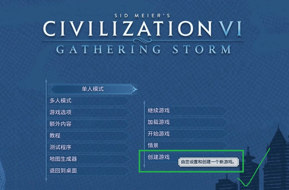 【单人模式 - 创建游戏】= 标准游戏模式,也是最多人爱玩、常玩的模式;