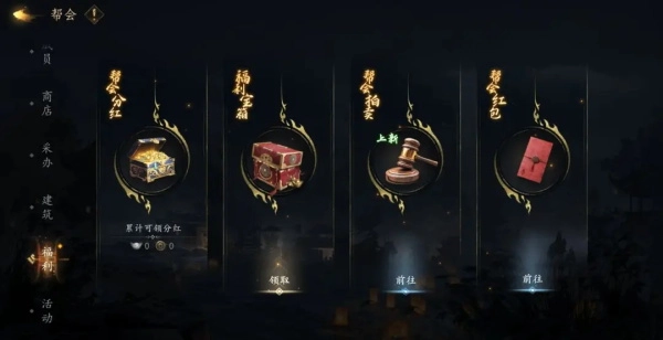 拍卖行玩法:参与帮派活动五行龙关、邪首讨伐,组织击杀野外首领,掉落物品将以帮派归属的形式进入帮会拍卖行进行拍卖,若无人拍卖将流拍进入世界拍卖行