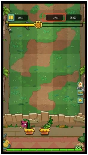 2、游戏开始时仅有一株初始植物具备攻击能力,它攻击僵尸后会有阳光掉落,玩家点击掉落的阳光即可完成拾取。