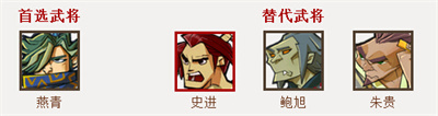 燕青(首选武将),史进、鲍旭、朱贵(替代武将)