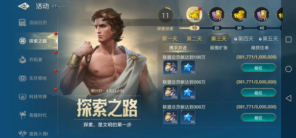 3.开荒阵容选择 主线任务赠 送 的 3 个 4星英雄 系统免费赠送,开局就有羁绊和时代兵种加成。在开局1-2天时强度最高,能够胜任1-6级打地任务。在获取五星英雄阵容后,可留作补刀队或铺路队使用。