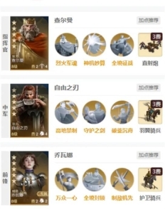 2、乔瓦娜队:查尔曼、自由之刃、乔瓦娜。以乔瓦娜为核心进行搭配,乔瓦娜依旧是适合一切主动队伍,但考虑到实际配将以针对罗马队为主,因此自由之刃为必选,又因为自由之刃没有万夫莫敌,因此将其作为2输出+辅助使用。