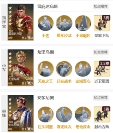 3、尤里乌斯肉队:雷庇达乌斯、尤里乌斯、安东尼奥。以尤里乌斯为核心进行组建,配将以肉度和稳定性为思路(尽量少主动技能)。