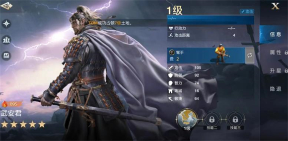 3、武安君:定位输出型武将,兵种为弓兵,普攻攻击距离4。其技能【料敌合变】是开场即可触发的技能,攻击距离5,触发概率100%,属于定向攻击技能。该技能会对带有控制效果(涵盖缴械、沉默、混乱、眩晕、嘲讽、力竭)的敌人造成100%攻击伤害,且伤害可叠加——敌方身上的控制效果越多,受到的伤害就越高,堪称“巡航导弹”般的存在。 不过,武安君的下限较低,但上限极高,几乎必须与拥有控制技能的英雄搭配,或是自身具备控制技能才行。推荐搭配组合如下: - 武安君+华帝+孟恬(可触发命运效果) - 武安君+军神+孟恬(可触发命运效果) - 武安君+华帝+波拿巴 搭配时需注意:队友必须是控制能力稳定、控制类型丰富的英雄;若缺乏控制效果的支撑,武安君的作用会大打折扣,几乎形同“废将”。