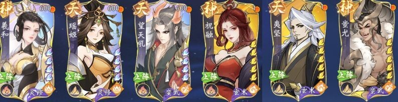 用水系卡牌回怒和治疗,用风系卡牌打爆发输出,主打女魃和武罗的双爆发核心。