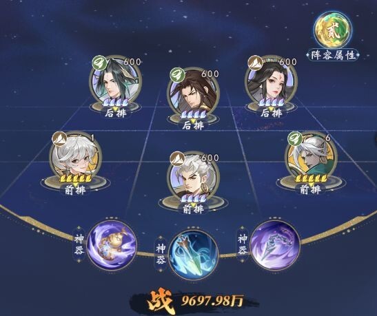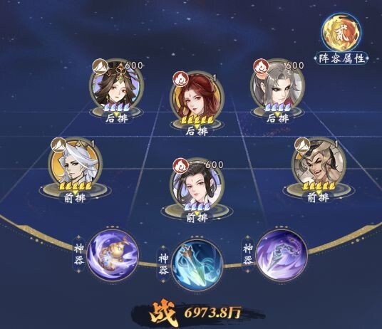 水+风混搭,3+3阵容,水风混搭。