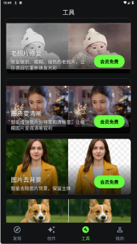 6、在工具页面提供了老照片修复、画质变清晰、图片去背景等功能