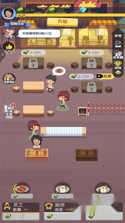 2、简单拖动,便可随心所欲地摆放家具和装饰品,让你的大排档独具一格,店面布局完全由你自由设计。
