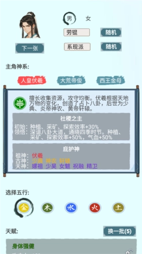 三大神系人皇伏羲、大荒帝俊、西王金母。每个神系的神力不同,且有专属的天赋。