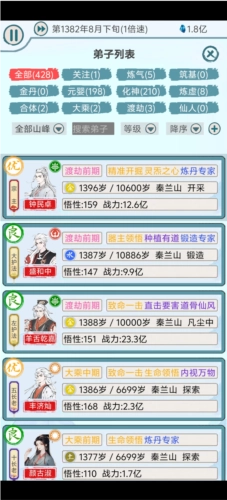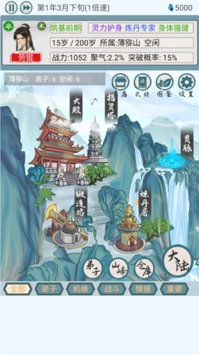3、 弟子天赋 - 近百种天赋随机组合,弟子分配到各个分院,人尽其用各尽其职。