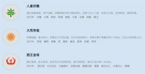 8、 三大神系 - 人皇伏羲、大荒帝俊、西王金母,三大神系任你选择,三系九大庇护神各具神力。