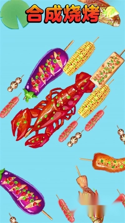 1、围绕烧烤食材展开,玩家需借助合成与吞噬持续提升等级,最终蜕变成为一只亮眼的龙虾;
