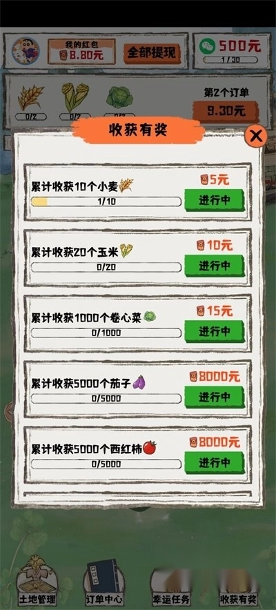 2、初期的订单福利十分吸引人,启用全体加速功能能让订单快速完成,还能缩短农作物的生长时长。