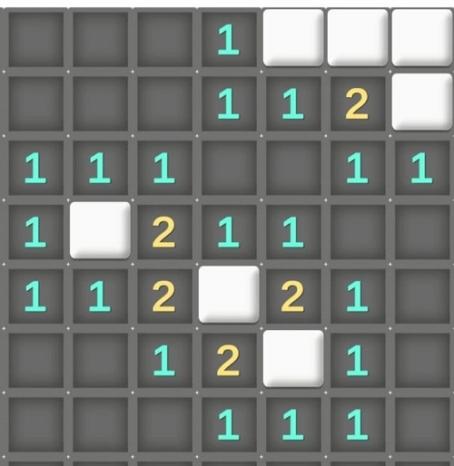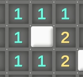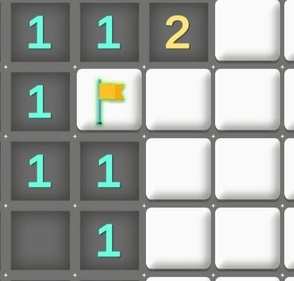 数字:若数字是1,意味着以它为中心的3×3区域内存在1颗地雷,以此类推,最大的数字是8。