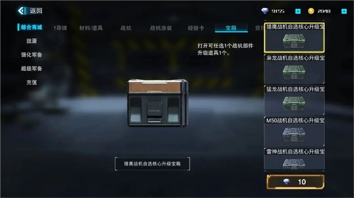 部件核心:可在商城的宝箱(隐藏于经验卡后方)处购买自选核心升级宝箱获取,也能通过升级飞机免费得到。