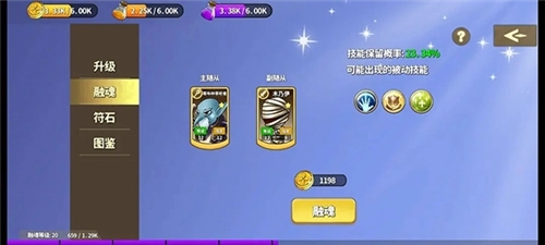 我选祭司做主随从、木乃伊当副随从的话,融魂后肯定能拿到祭司的第一个被动技能——这也是职业特有的,简称职业被动,每个职业都只有这么一个。而后面两个被动技能,每个都有23%的几率附加。另外,融魂之后副随从会被消耗掉。