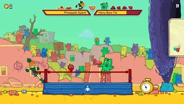 2、作为最受欢迎的网络游戏之一,其最新版本迎来了卷饼野牛与新伙伴的加入:菠萝桶和El Pollo将通过弹射、崩裂、享用蛋糕、击碎障碍、飞行乃至翱翔天际等方式,全力阻止软糖的入侵!