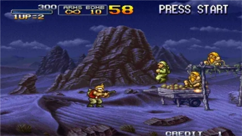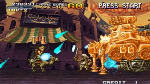 1、作为一款对于横版射击游戏影响很大的游戏,合金弹头系列无疑是小时候很火爆的射击游戏;