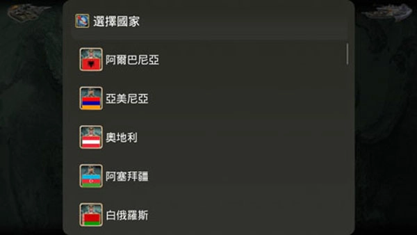 在游戏中,您选择您想要领导的国家并开始游戏。