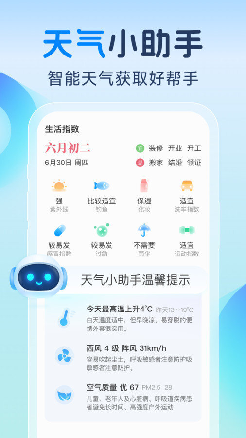 智知天气是一款十分便捷的天气预测工具,它能为你实时更新天气变化情况,还会给出添衣、带伞等各类贴心提示,帮助你提前做好出行准备。