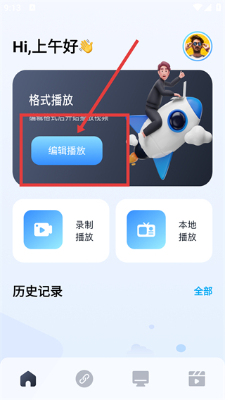 1、在主界面点击【编辑播放】按钮,就能进入格式转换页面,开始处理视频的格式啦。