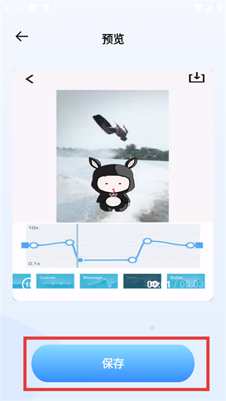 4、进入预览页调整好视频效果后,点击底部的【保存】按钮,就能把处理好的视频存下来啦。