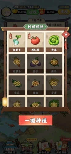 1、种植、管理和销售蔬菜的过程简单而有趣,让玩家享受轻松的游戏体验。