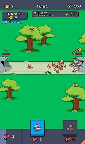 3、士兵之间存在相互克制的关系,合理搭配士兵阵容是决定胜负的关键因素之一,这需要你不断尝试不同的搭配组合。