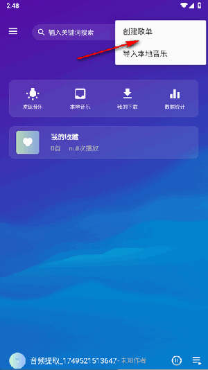 2.在弹出的选项中,点击“创建歌单”这一按钮。