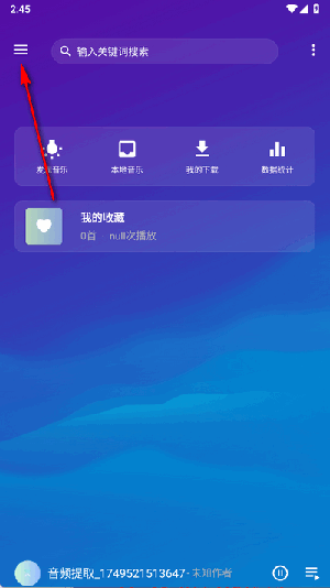 3. 该软件还支持把歌曲离线存储到本地设备,从而为用户带来更优质的听歌体验。1.首先在首页轻点左上角的三横杠标识。
