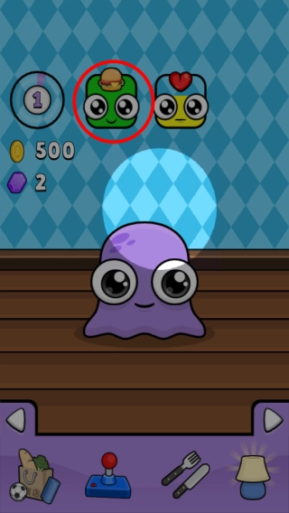 1、进入游戏后,界面上方会显示宠物的当前状态,比如此刻我们的小宠物正处于饥饿状态。