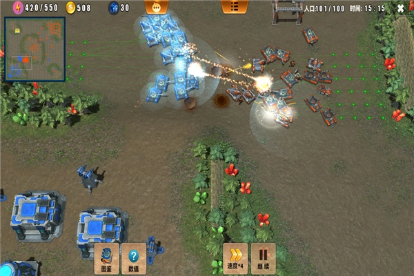 (2)矿工模式:基地直接生产矿工进行采矿以获取资源。矿工的采集效率支持升级,因此在后期阶段,其资源采集方面会具备一定优势;不过,矿工的生命值相对较低,比较容易被敌方摧毁。