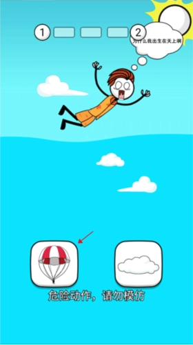 2、点击屏幕,会出现对应的道具来化解当前状况,选择不同的道具会导向不同结局;若选择左侧的降落伞,云便会被风吹散。