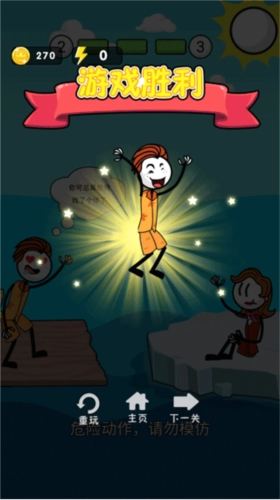 2、在《火柴人神逃脱4》里,你能学习到各种各样的操作方式与技巧,灵活操控自己的火柴人去完成一场场冒险挑战,从而领取到相应的奖励。