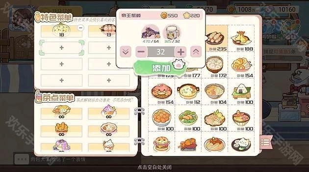 2、前期可以先解锁基础菜品,保证翻台率和现金流;随着进度推进,逐步研发稀有食材的高端料理,打造成餐厅招牌,提高评分和收入