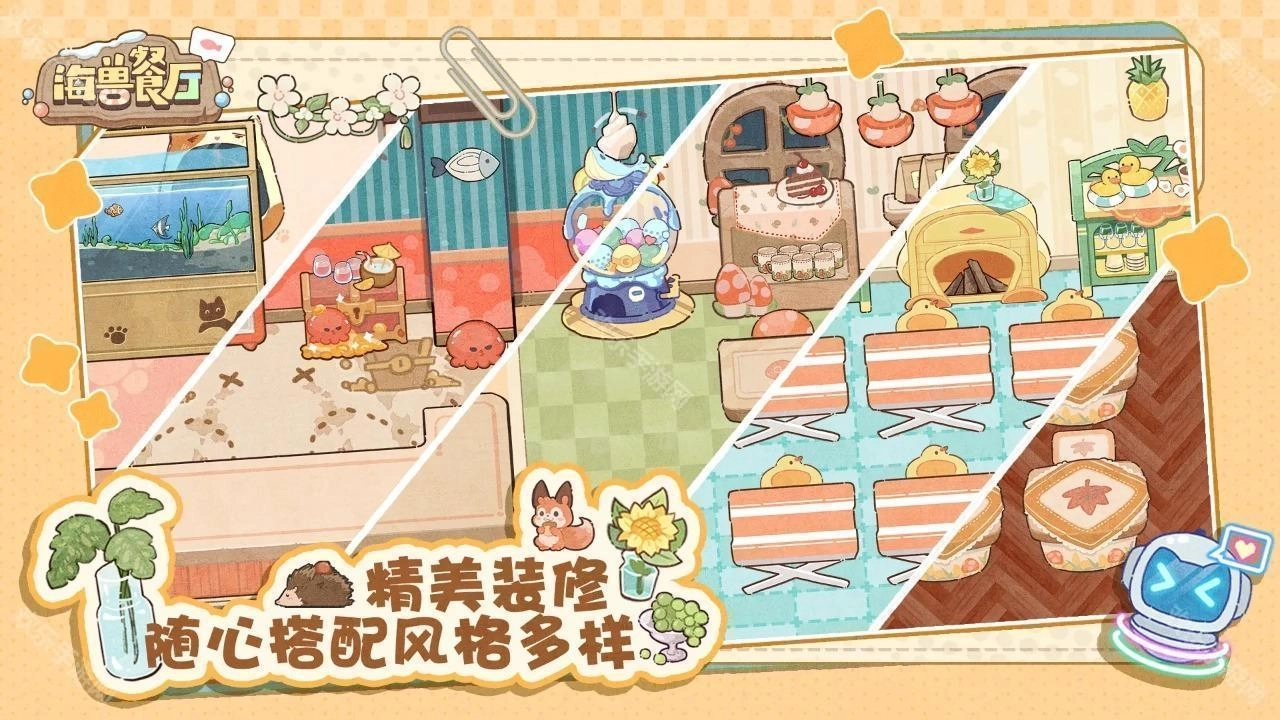 海兽餐厅是一款融合了模拟经营、海洋探索、好感培养与挂机养成元素的餐厅经营游戏。游戏里有着可爱的海兽伙伴,画面风格温馨又治愈,玩家将和这些海兽一同开启深海探秘、美味烹饪与个性化餐厅布置的经营旅程!