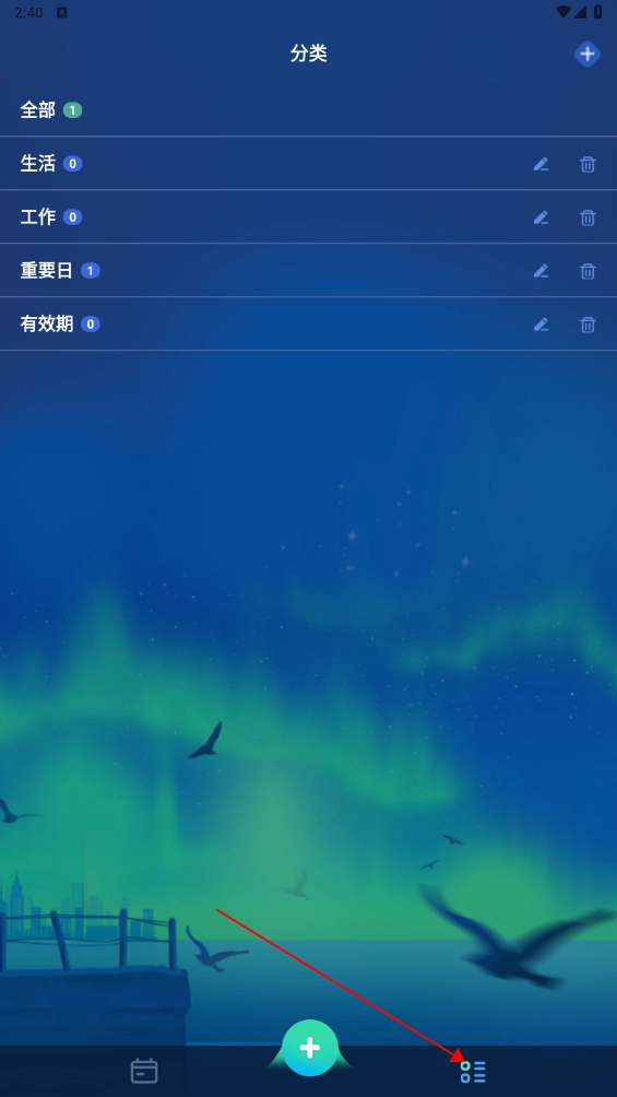 4.点击下方箭头所指的位置,就能看到清晰的分类,查找纪念日会更加便捷。